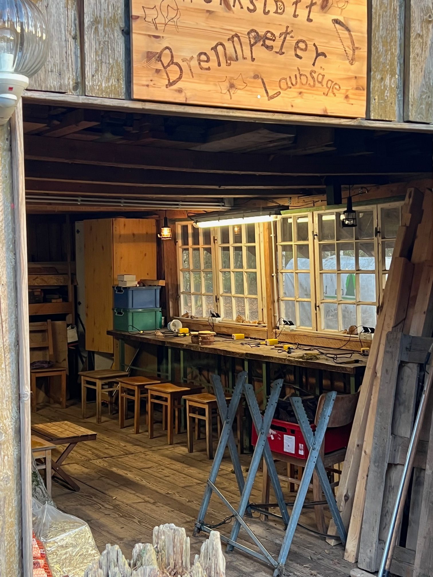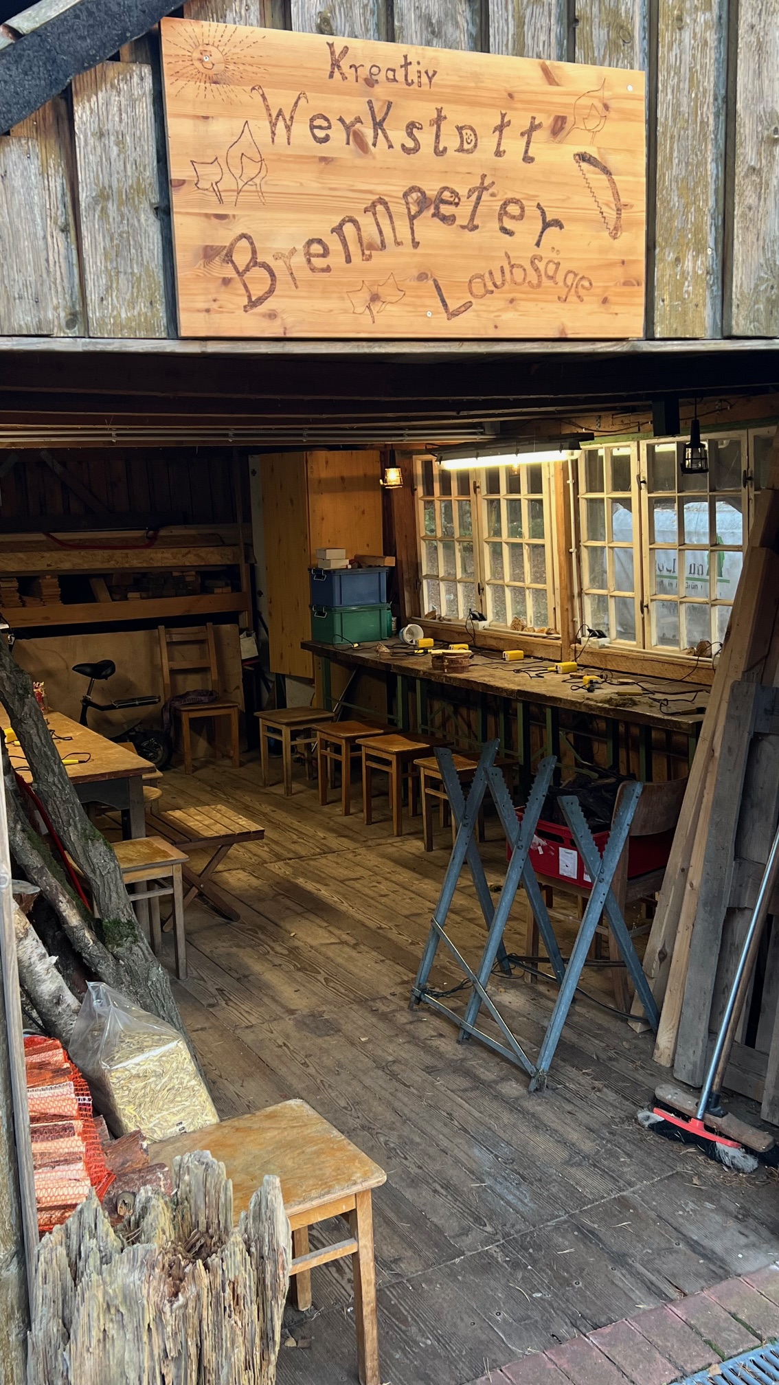 In der Kreativ Werkstatt hier im Heideheim arbeiten wir mit  der Laubsäge oder dem Brennkalben.